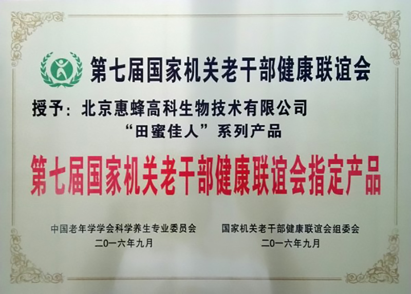北京惠蜂高科生物技術(shù)有限公司“田蜜佳人”系列產(chǎn)品作為國家機(jī)關(guān)老干部健康聯(lián)誼會長期指定產(chǎn)品頗受各級領(lǐng)導(dǎo)人青睞。