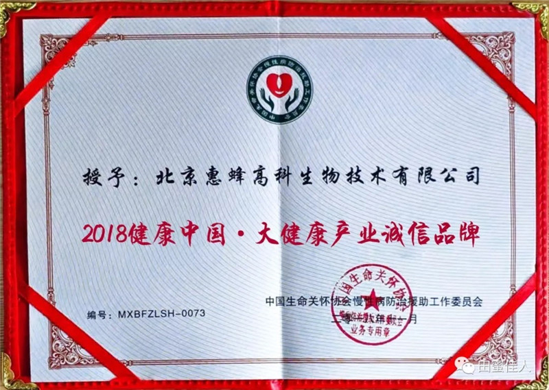 北京惠蜂董事長倪仔鑫上臺領(lǐng)獎 會議期間,北京惠蜂被中國生命關(guān)懷慢性病防治援助工作委員會授予“2018健康中國·大健康產(chǎn)業(yè)誠信品牌”