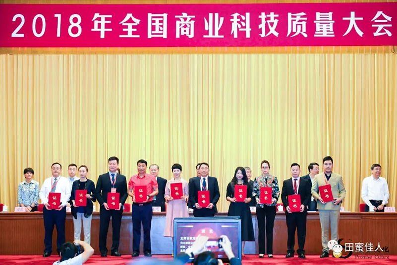 倪仔鑫董事長(左一)代表北京惠蜂領(lǐng)取“全國商業(yè)質(zhì)量獎”