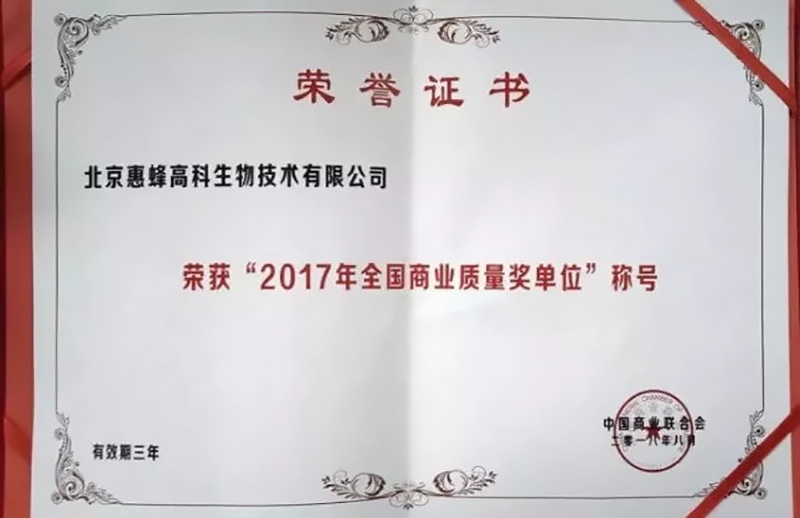 “質(zhì)量好、品牌優(yōu)”的典型示范單位——北京惠蜂在本次大會榮獲“全國商業(yè)質(zhì)量獎”,進(jìn)一步增進(jìn)公眾對北京惠蜂產(chǎn)品以及品牌文化的認(rèn)知;北京惠蜂近年來不斷獲得的各項榮譽(yù)激勵著惠蜂人提升產(chǎn)品質(zhì)量和品牌意識,讓惠蜂成為全國蜂產(chǎn)品質(zhì)量品牌文化的代言人。